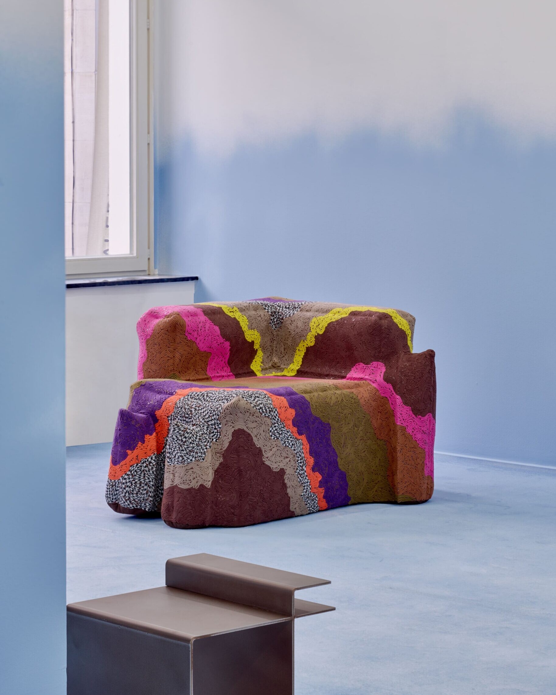 This exhibition brings together the work of Bram Vanderbeke and Wendy Andreu, two European designers united by a deep fascination for material exploration. Both approach making as a form of research, pushing the physical limits of concrete, textiles, metal, and composites. Their practices blur the boundaries between design, sculpture, and architecture, creating objects that shape and redefine space. Vanderbeke’s monumental, raw structures and Andreu’s soft-yet-rigid textile forms each reveal a poetic materiality that celebrates texture, gesture, and process.Beyond function, their pieces generate atmospheres — micro-architectures and enveloping volumes that invite new ways of inhabiting space. Rooted in sustainability and contextual sensitivity, their work embodies a contemporary vision of cross-disciplinary, experimental design, demonstrating how materials can become a language for imagining new spatial experiences.For this exhibition, the designers present newly created collaborative works in which their practices converge and expand one another. These pieces are shown alongside individual works from each designer, offering a broader view of the dialogues and contrasts that underpin their collaboration.’Works by Bram Vanderbeke & Wendy Andreu.Curated by Scott Lippens.